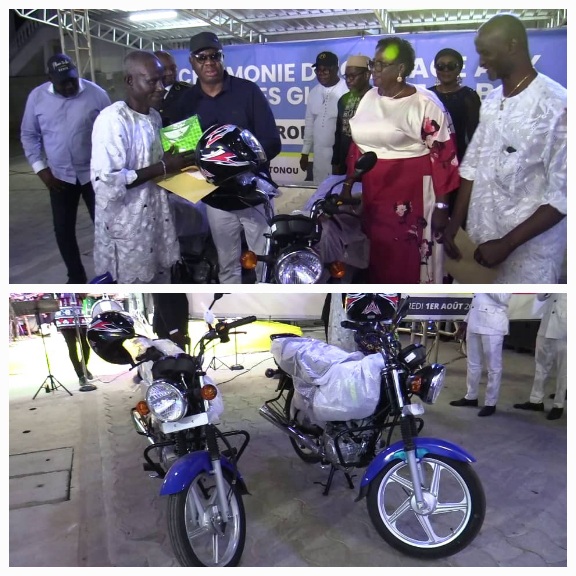 Le maire de Cotonou, Luc Sètondji ATROKPO, a rendu un hommage vibrant à deux icônes de la boxe béninoise, Georges BOCO et Nazaire PADONOU, en reconnaissance de leurs carrières exceptionnelles. Lors d’une cérémonie organisée à l’Hôtel de Ville, les deux anciens champions ont reçu des mains du maire une moto chacun et l’ouverture d’un compte bancaire. Ce geste fort, salué par de nombreuses personnalités, vise à reconnaître et à soutenir les gloires sportives du pays de leur vivant. Georges BOCO, surnommé « le roi du K.O », a marqué son époque avec un palmarès impressionnant : onze fois champion d’Afrique dans la catégorie des -72 kg, 48 K.O. sur 50 combats et une participation aux Jeux olympiques de 1984. De son côté, Nazaire PADONOU, alias « le Tigre », a dominé les rings africains en décrochant sept titres de champion d’Afrique entre 1992 et 2004. L’initiative, qui a mobilisé un total de 2 500 000 FCFA grâce au soutien du député Orden ALLADATIN et de Pascal AHOUANHOU, est bien plus qu’un simple cadeau. Elle incarne la volonté du maire ATROKPO de s’inscrire dans la dynamique du gouvernement de valoriser le secteur sportif. La cérémonie a réuni un parterre de personnalités politiques et sportives, dont le député Didier Maixent DJEIGO, le Préfet du Littoral Alain OROUNLA, et de nombreux conseillers municipaux. Ce rassemblement symbolique met en lumière l’importance d’inspirer les jeunes générations et de faire du sport un moteur de fierté nationale et de cohésion sociale, comme l’a souligné le maire.