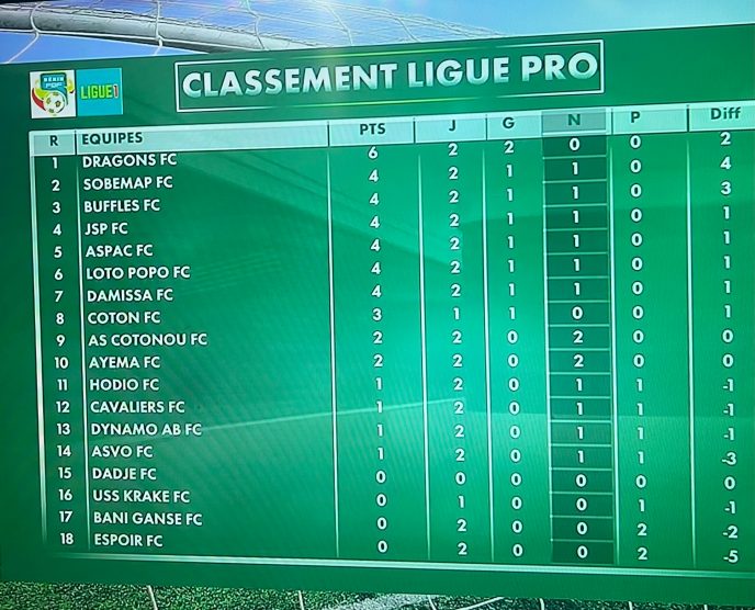 À noter que le Coton FC et le Dadjè FC, engagés dans des compétitions continentales la semaine dernière, ont retrouvé le championnat ce week-end. Le premier s’est imposé, tandis que le second s’est incliné.