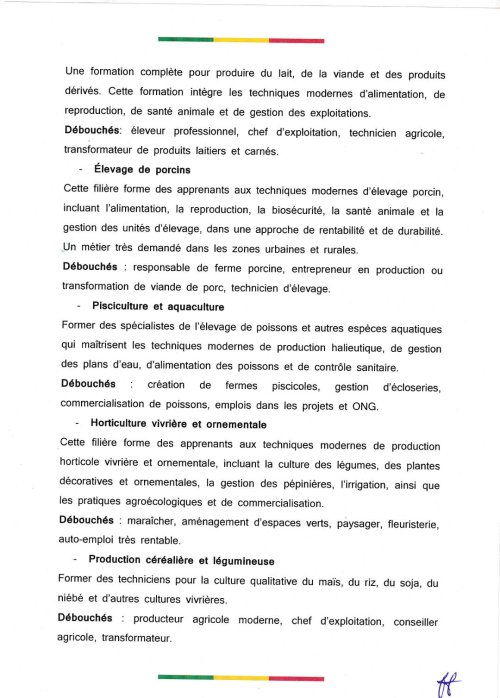 Selon le ministère, ces formations offrent des débouchés variés, allant de la création d’exploitations agricoles modernes à l’emploi dans les projets agricoles, les ONG, les structures d’encadrement et la transformation des produits.