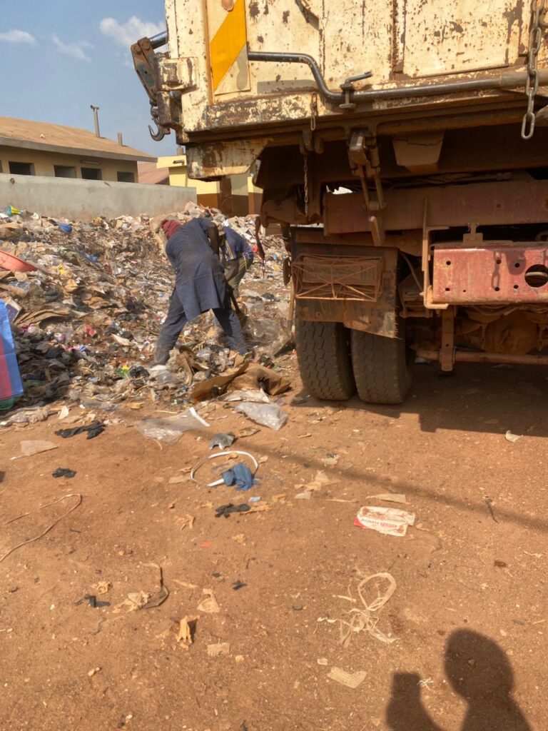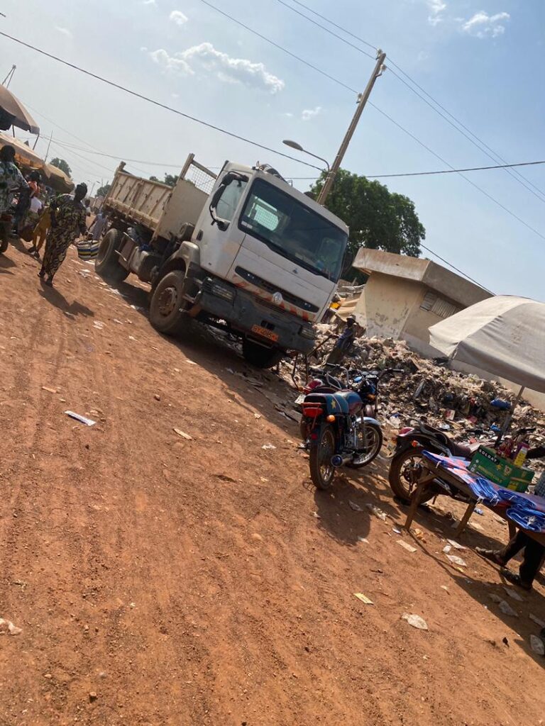 Sur place, les images sont sans équivoque. Un camion de collecte est mobilisé, des agents s’activent et les montagnes d’ordures sachets plastiques, cartons, déchets ménagers et restes de marchandises sont progressivement évacuées. Une scène qui contraste avec l’habitude des commerçants et des usagers, longtemps contraints de vivre et de travailler au milieu des immondices.