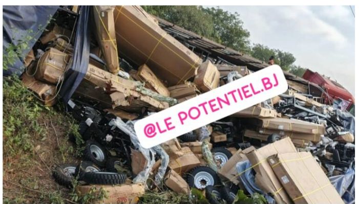 Savè : Un camion chargé de tricycles se renverse après une série d’erreurs d’appréciation