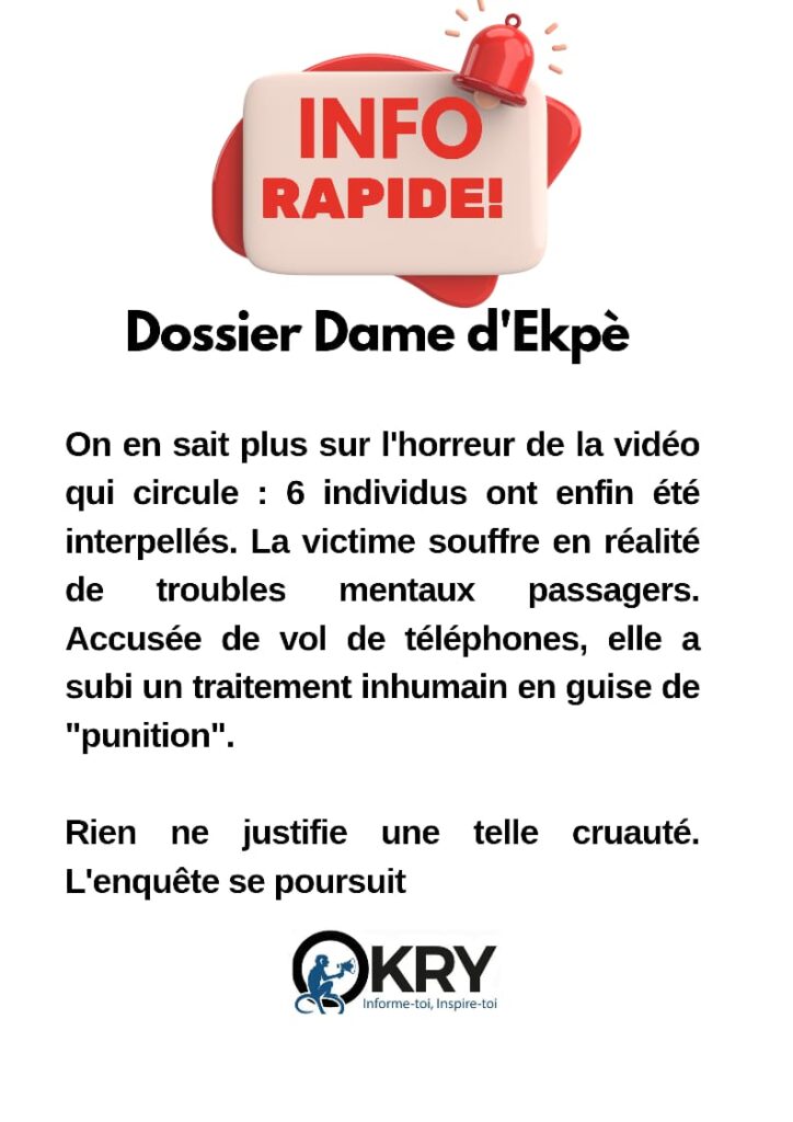 Après la diffusion, devenue virale sur les réseaux sociaux, d’une vidéo montrant une jeune femme torturée par le feu, la Police républicaine a aussitôt lancé un appel à témoins. Cette initiative a permis au commissariat d’Ekpè d’interpeller six personnes à Djeffa plage.